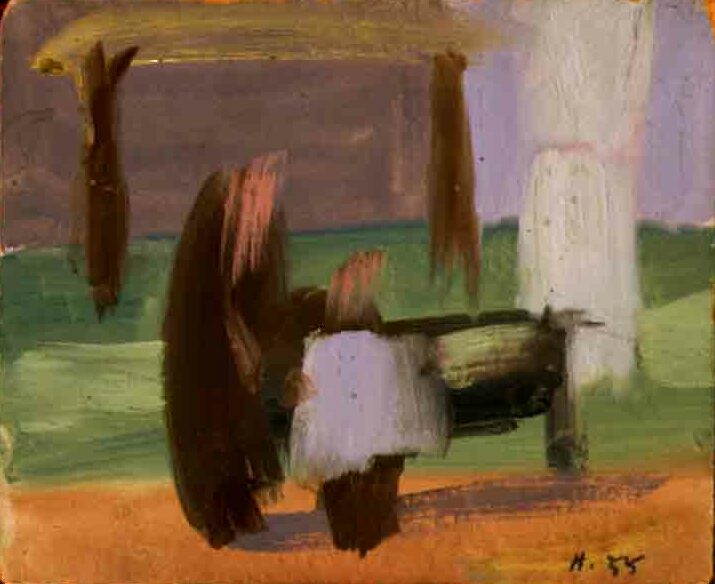 adminfi 8 octobre 2001 huile, Papier PERSONNAGES AU BANC INSCRIPTIONS Monogrammé, daté en bas à droite H 55, signé, daté au dos: Hélion 55PROVENANCE Collection David Hélion – Collection.particulière Certificat 22 mai 2002 Date 1955 Support huile sur carton Dimensions 16,5 x 20 cm 6 1/2 x 7 7/8 in. 1955