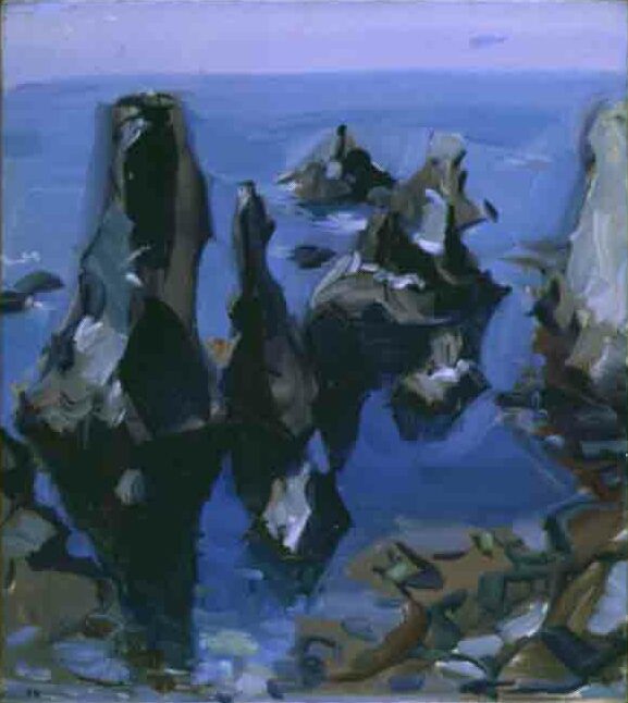 Monogrammé en bas à droite : H,daté en bas à gauche :58 ,signé, daté, titré au dos : Hélion 58 « Port Coton »