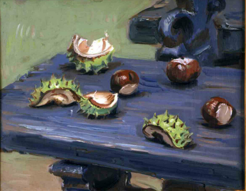 adminfi 30 mai 2013 huile, Sur Bois CHATAIGNES au banc INSCRIPTIONS Monogrammé en haut à gauche:H ,signé, daté au dos: Hélion 20 sept 55PROVENANCE Collection John Ashbery, New-York- Courtesy of Flow Chart Foundation, New- York Date 1955 Support huile sur bois Dimensions 31,8 x 40,6 cm 12 1/2 x 16 in. 1955
